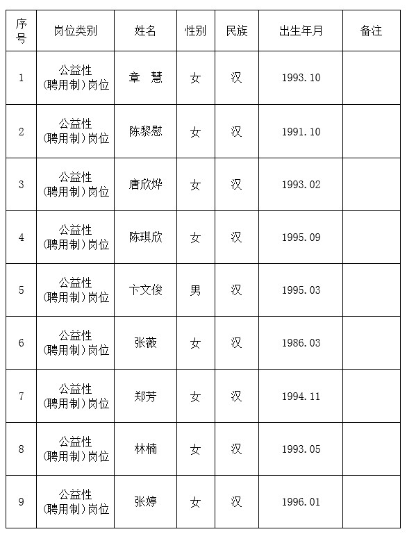 (聘用制)岗位工作人员公开招聘拟录用人员名单