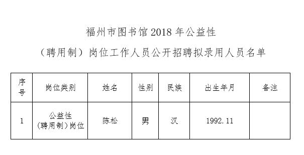 福州市图书馆第十七批公益性(聘用制)岗位拟录用人员名单的公示