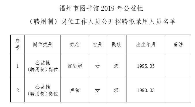福州市图书馆2019年第一批公益性(聘用制)岗位拟录用人员名单的公示