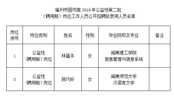 福州市图书馆2019年第二批公益性(聘用制)岗位拟录用人员名单的公示
